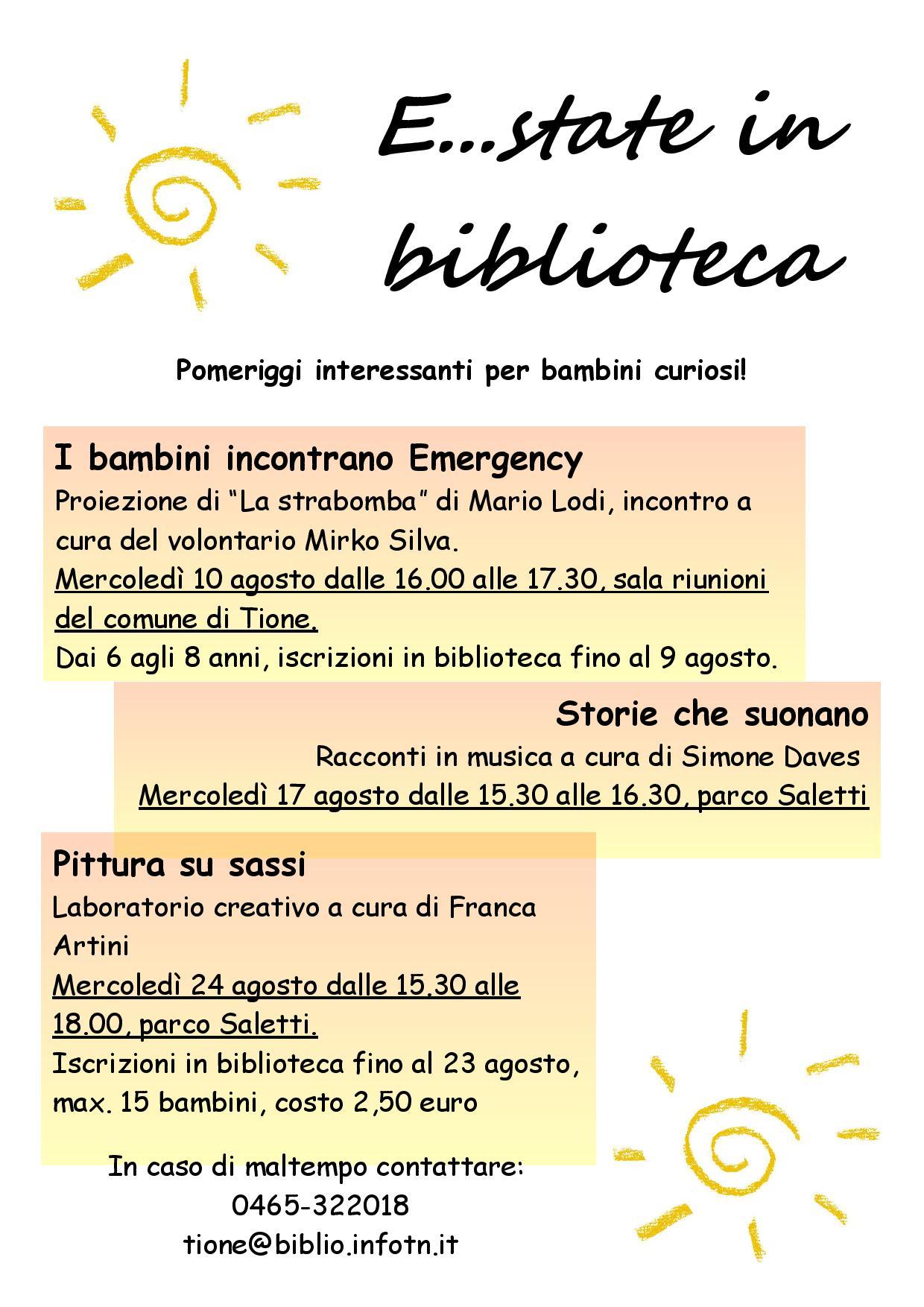 Iscrizioni in biblioteca fino al 23 agosto, max. 15 bambini, costo 2,50 euro
