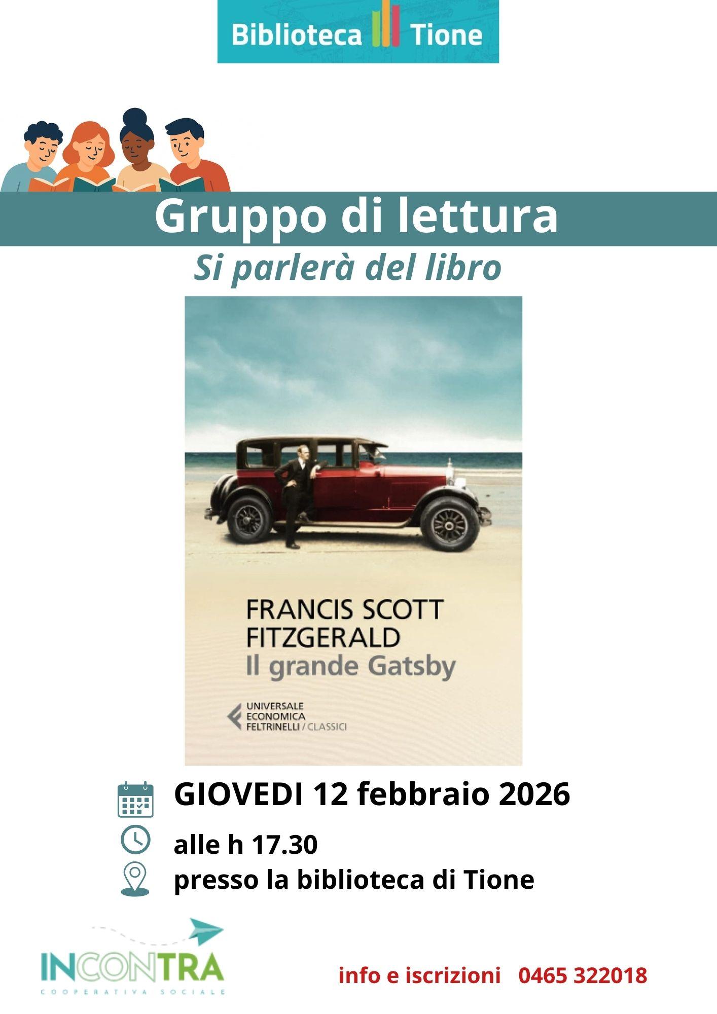 La Biblioteca di Tione propone un nuovo appuntamento del Gruppo di lettura, dedicato al libro Il grande Gatsby di Francis Scott Fitzgerald, Premio Nobel per la Letteratura.