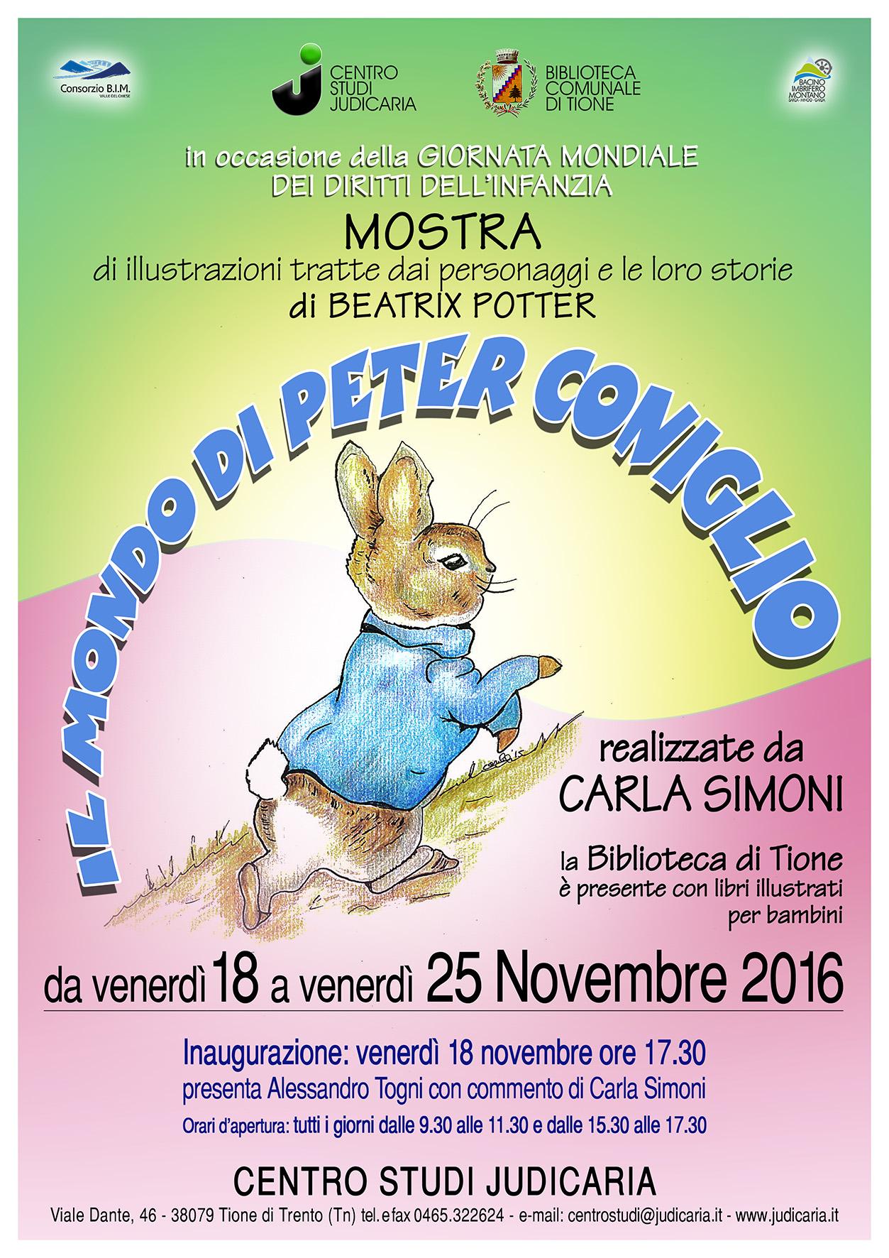Illustrazioni tratte dai personaggi di Beatrix Potter realizzate dalla maestra Carla Simoni. Dal 18 al 25 novembre 2016 presso il Centro Studi Judicaria. La biblioteca partecipa con una piccola selezione bibliografica.