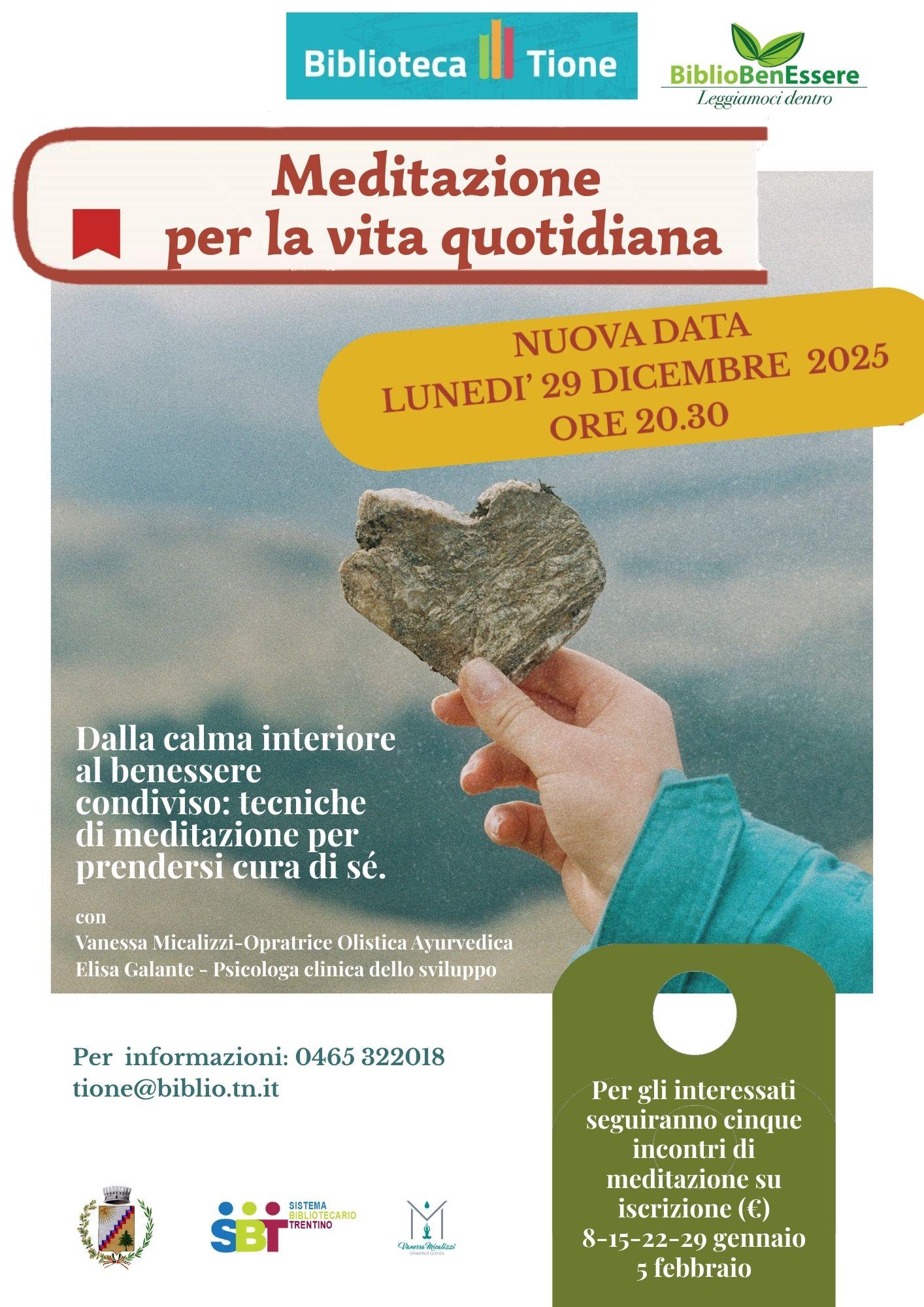 Un incontro per scoprire tecniche semplici di meditazione e cura di sé, con Vanessa Micalizzi ed Elisa Galante. Dalla calma interiore al benessere condiviso: tecniche di meditazione per prendersi cura di sé. In caso di interesse, seguirà un corso di approfondimento su iscrizione.