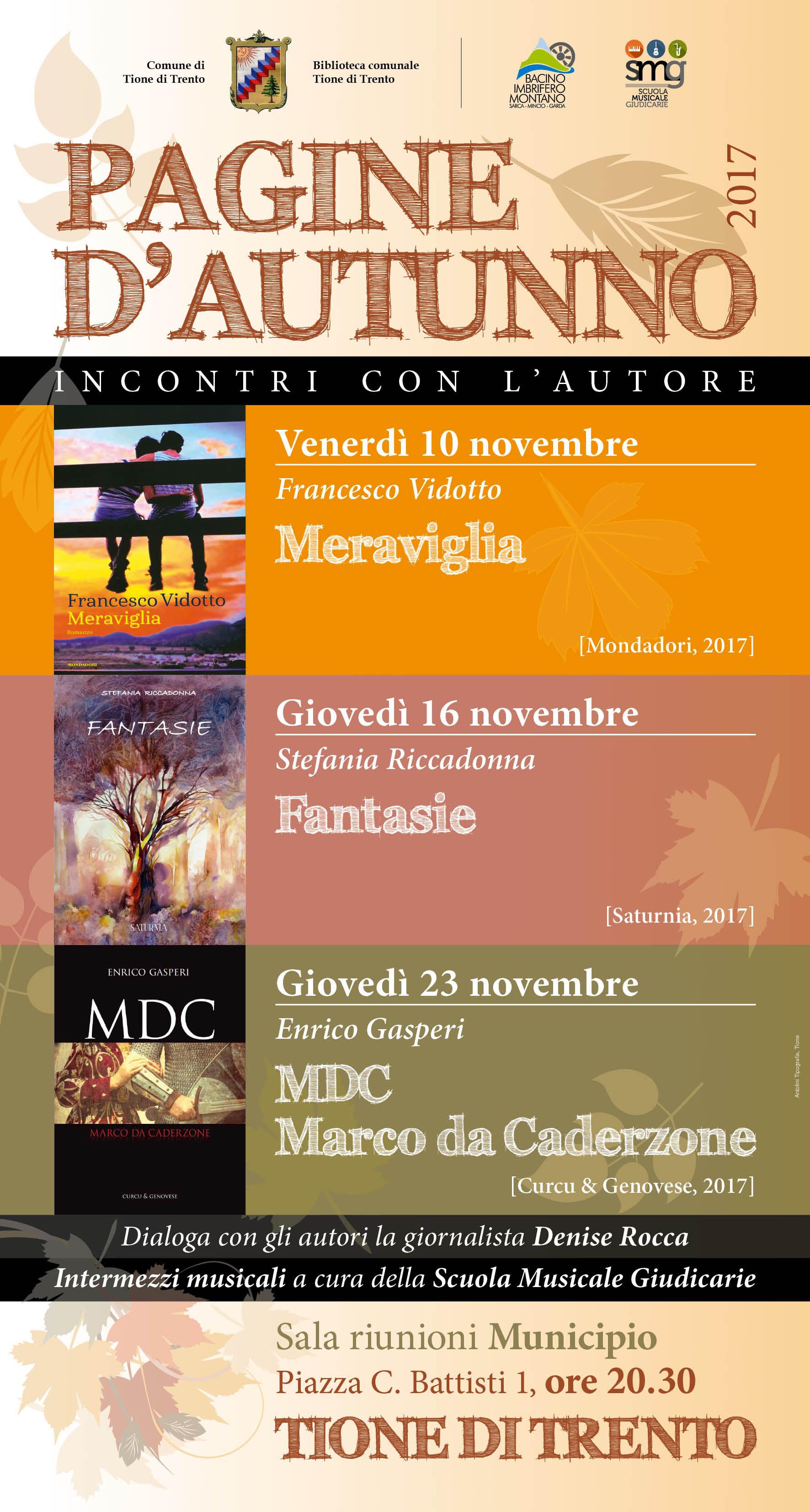 All'interno della nostra rassegna Pagine d'autunno, vi offriamo una serata all'insegna dell'arte: Stefania Riccadonna presenta il nuovo libro "Fantasie", un insieme di poesia e pittura, intervistata da Denise Rocca e accompagnata da musica e danza a cura della Scuola musicale delle Giudicarie.