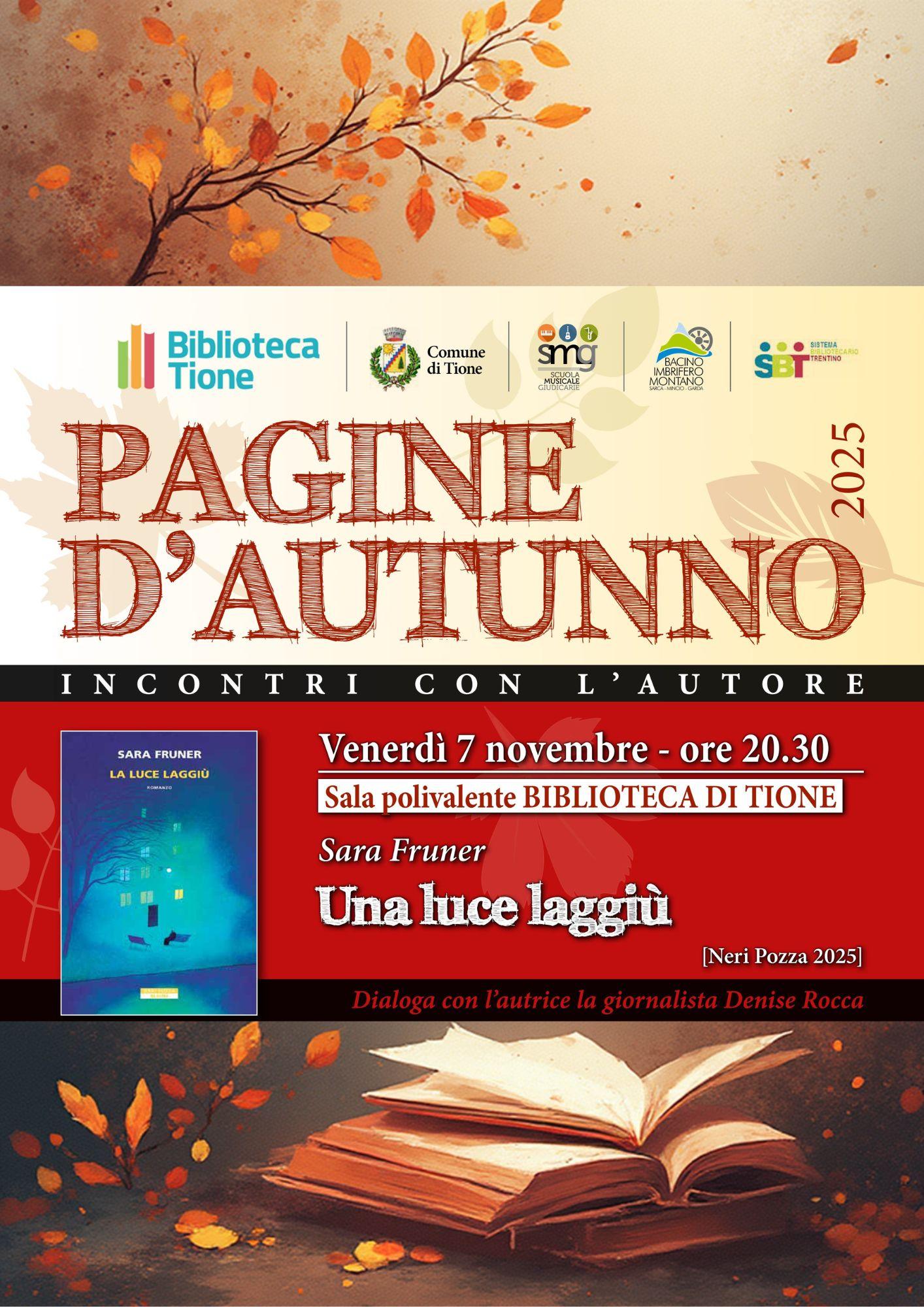 La rassegna Pagine d’Autunno 2025 si apre con Sara Fruner, che presenterà il suo nuovo romanzo Una luce laggiù (Neri Pozza, 2025).