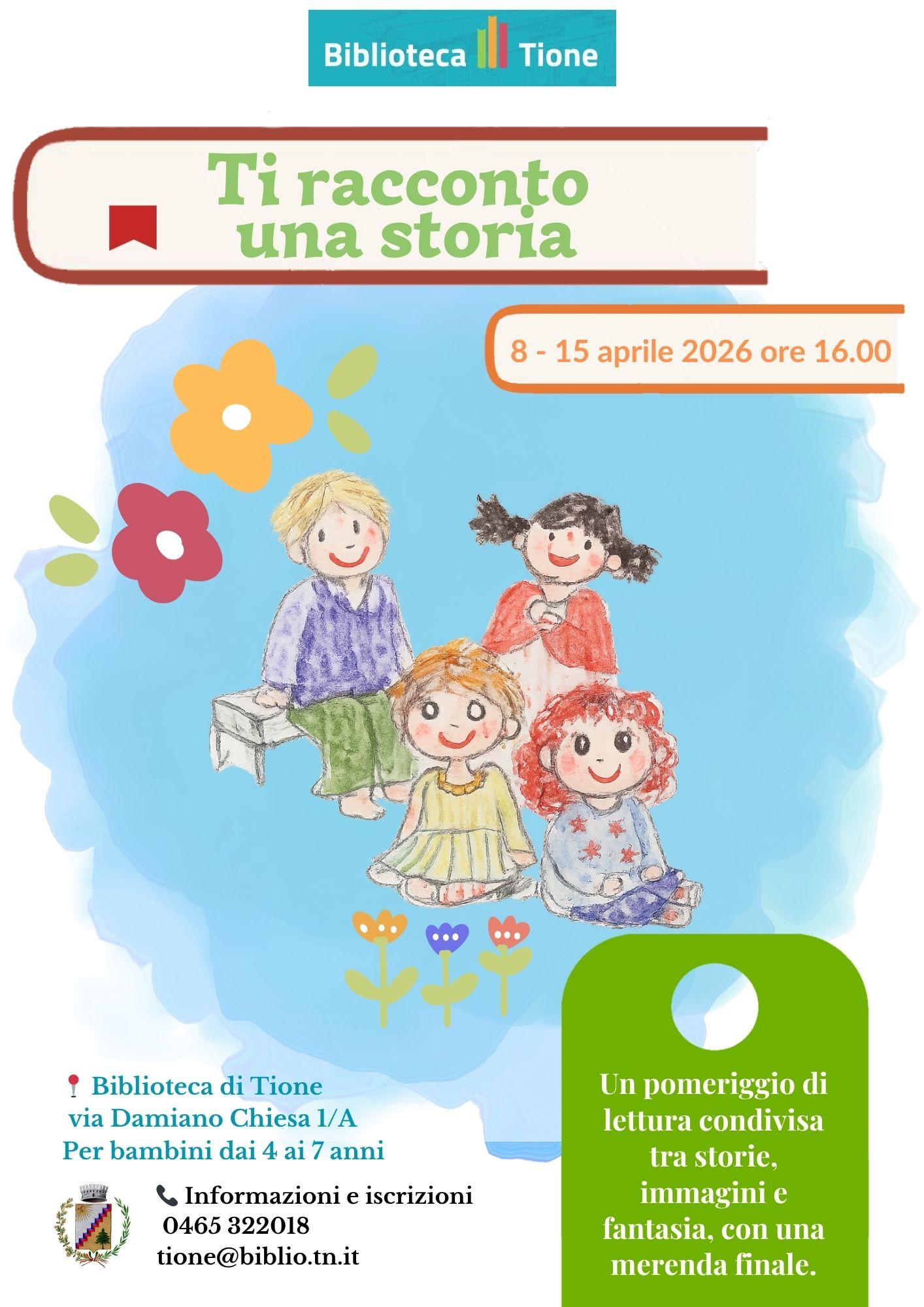 La Biblioteca di Tione propone Ti racconto una storia, un appuntamento dedicato ai più piccoli, pensato per condividere il piacere della lettura in un’atmosfera accogliente e partecipata.